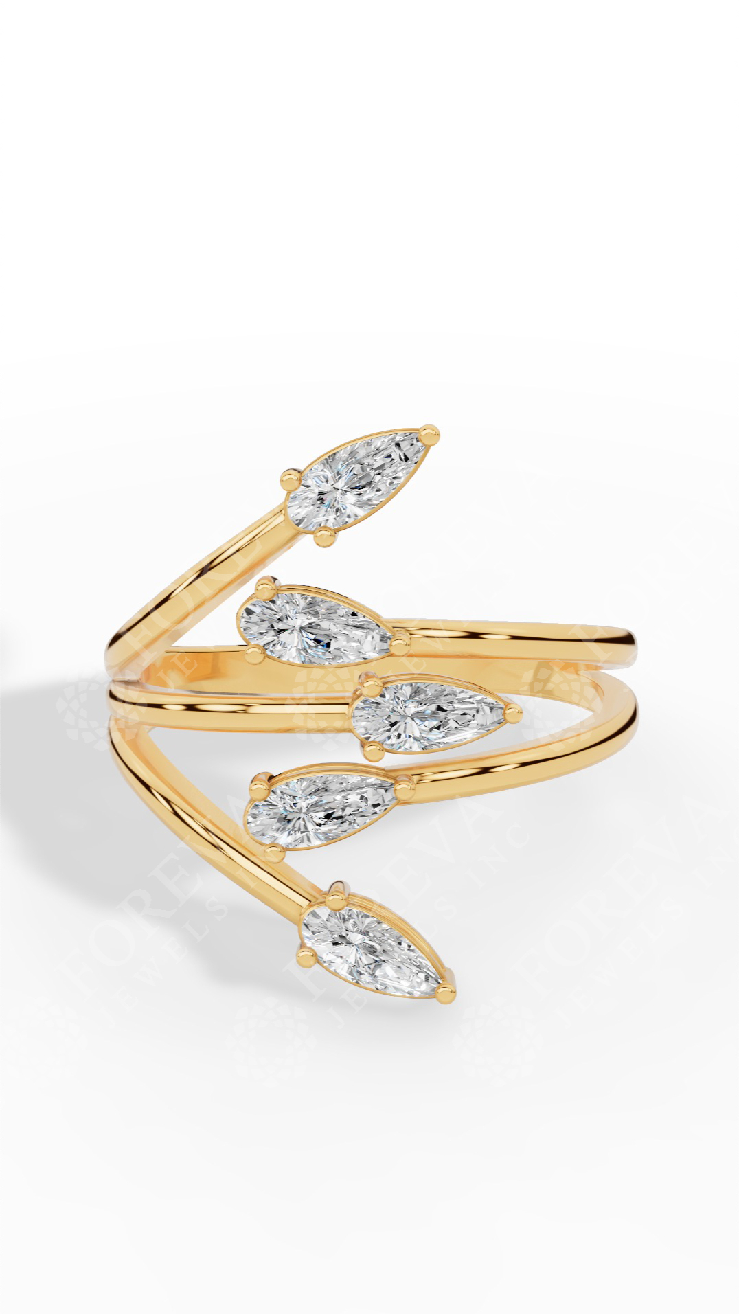 Branch & Leaf Multi Stone Bypass Pear Cut Wedding Ring Lab Grown Diamonds 14K Yellow Gold 0.6 CTW