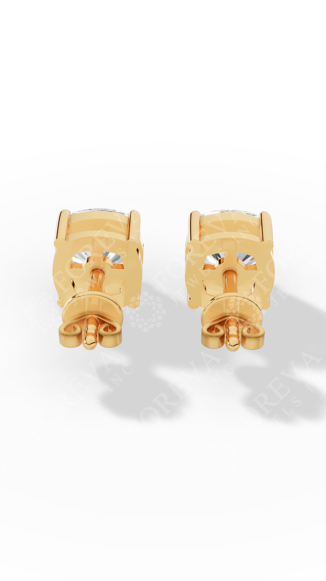 Cushion Cut Solitaire Stud Earrings Lab Grown Diamonds 18K Yellow Gold 2.17 CTW
