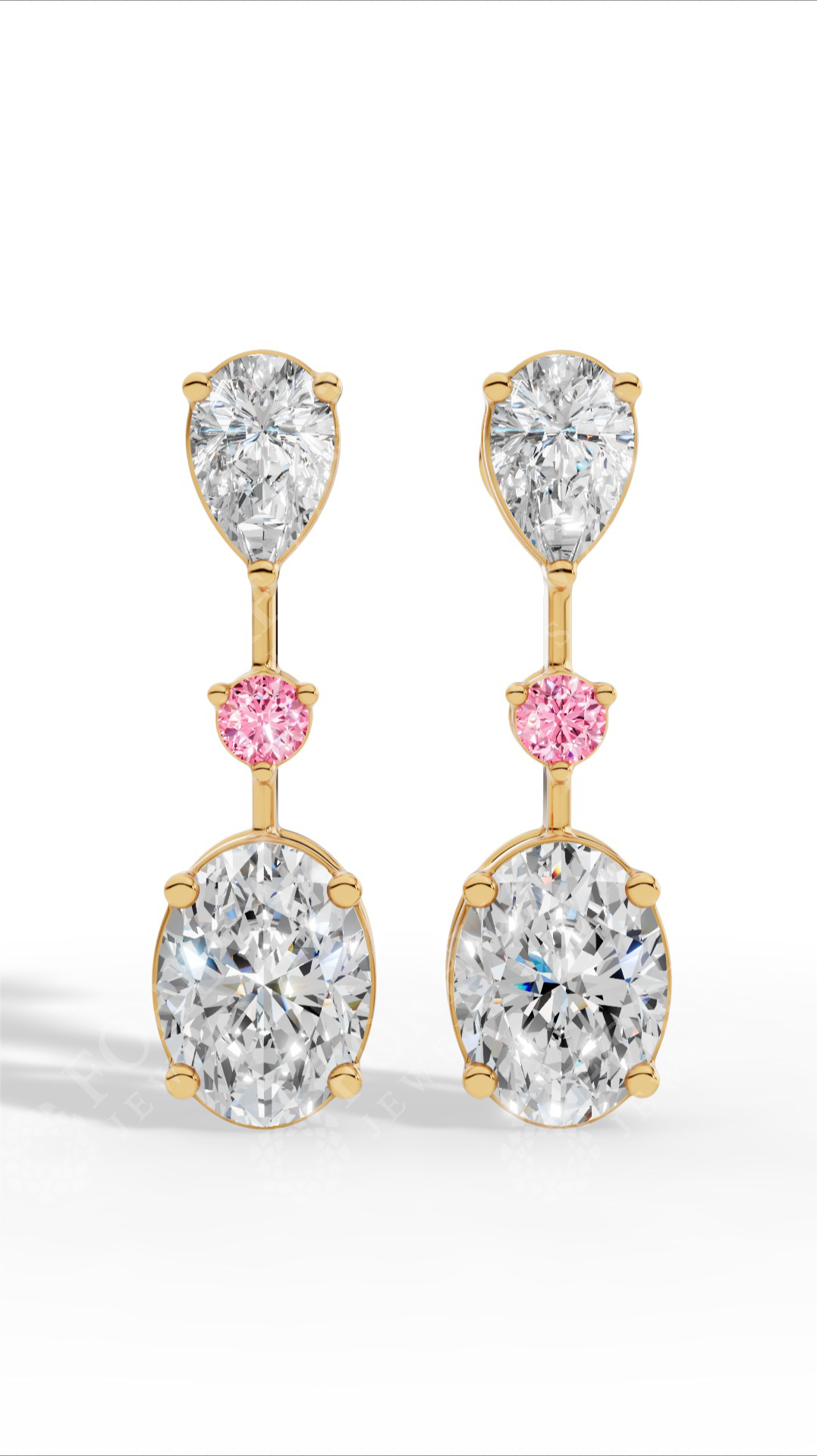 Double Charm Drop Earrings With Combination Of Pear, Pink Round & Oval Cut Lab Grown Diamonds 10K Yellow Gold 2.8 CTW