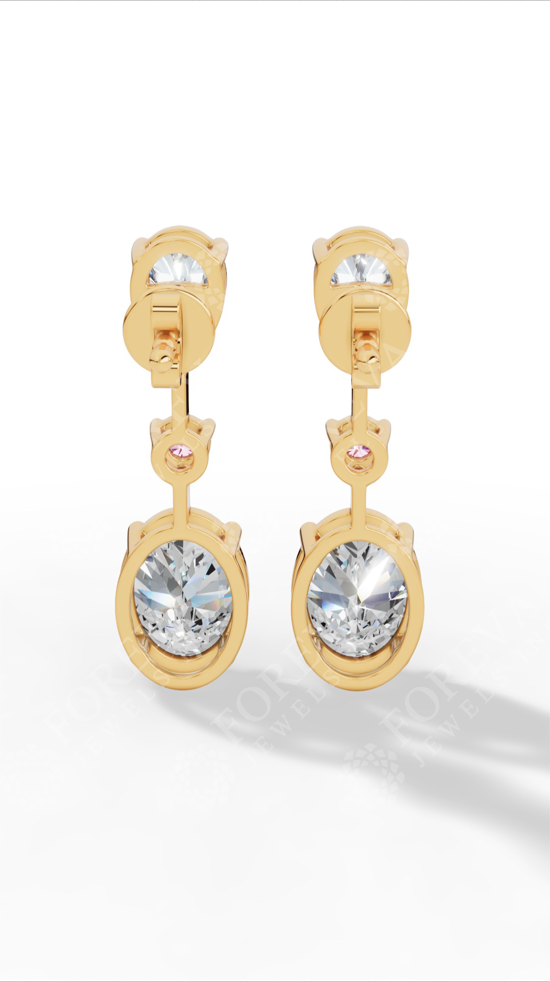 Double Charm Drop Earrings With Combination Of Pear, Pink Round & Oval Cut Lab Grown Diamonds 10K Yellow Gold 2.8 CTW