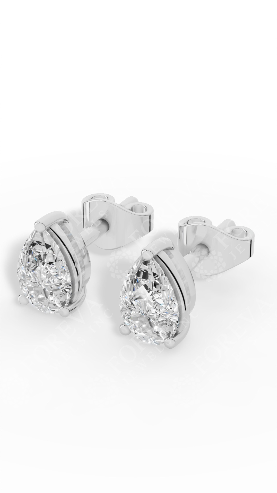 The elongated three prong pear cut solitaire stud earrings feature a sleek, pointed pear gemstone secured by three prongs, offering elegant brilliance with a modern, minimalist design. The 10K white gold composition balances affordability with longevity, its sturdy alloy perfect for pieces worn constantly.