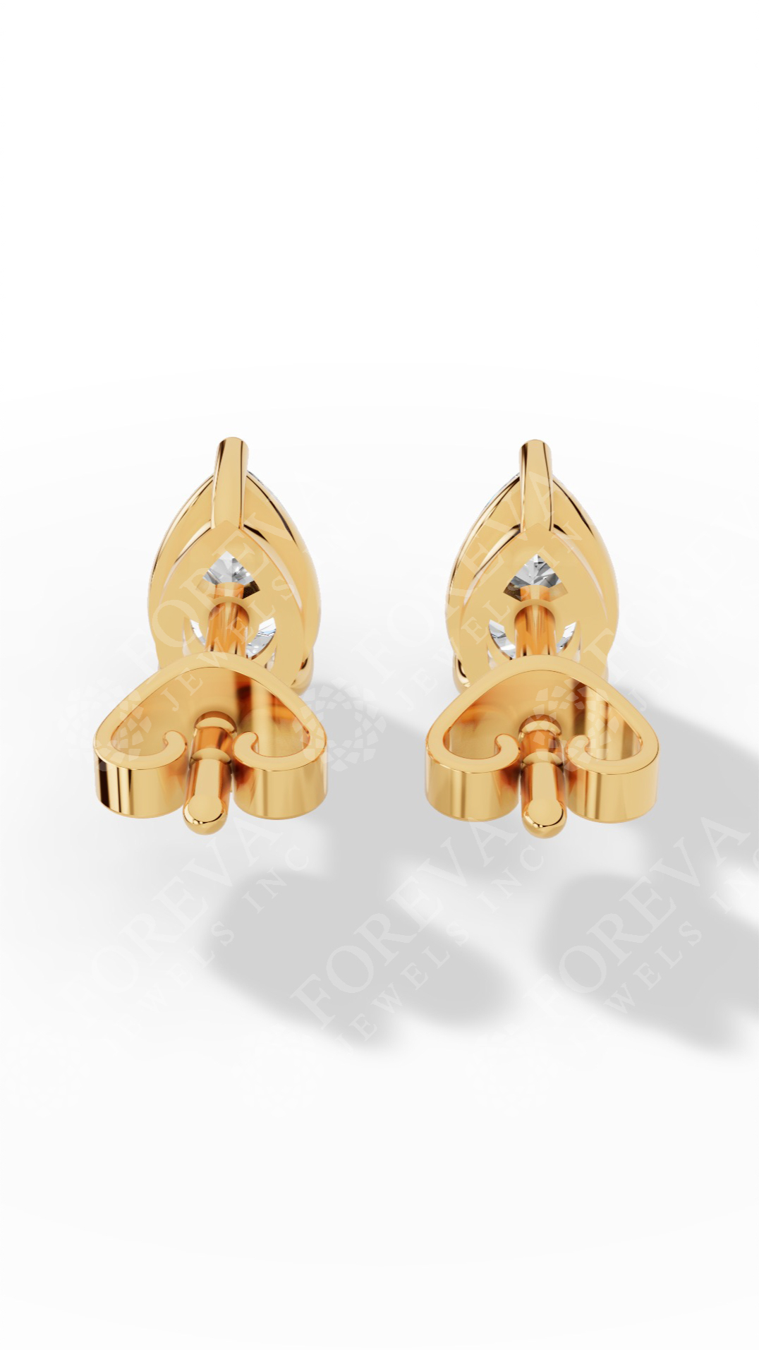 Elongated Three Prong Pear Cut Solitaire Stud Earrings Lab Grown Diamonds 18K Yellow Gold 0.7 CTW