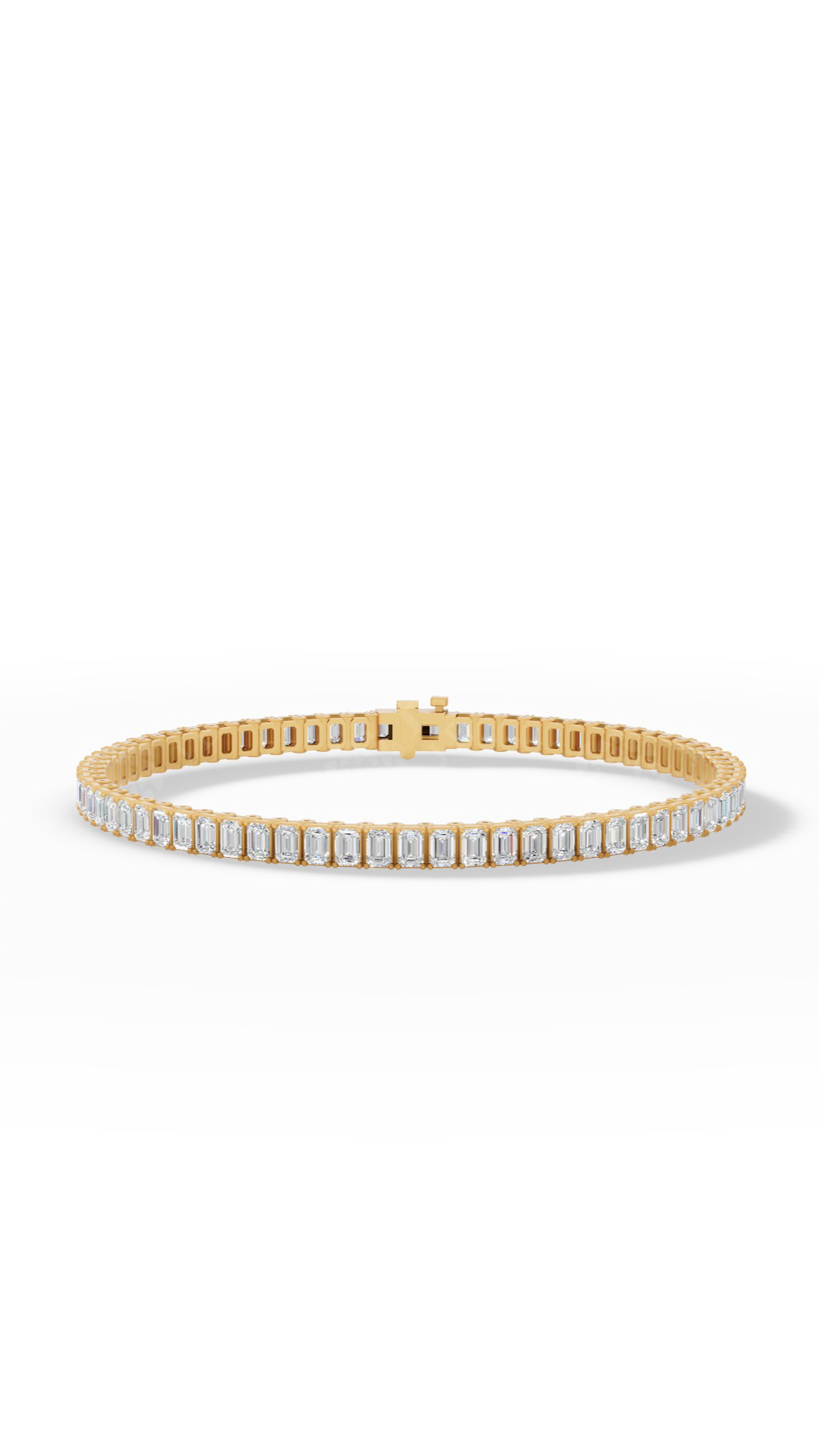 Elegant tennis bracelet featuring emerald cut stones, combining sleek step-cut facets and ethical brilliance. A timeless, sophisticated accessory that adds refined sparkle and sustainable luxury to any look. The 10K yellow gold setting ensures lasting performance, its strong alloy protecting the design while maintaining recognizable golden warmth.