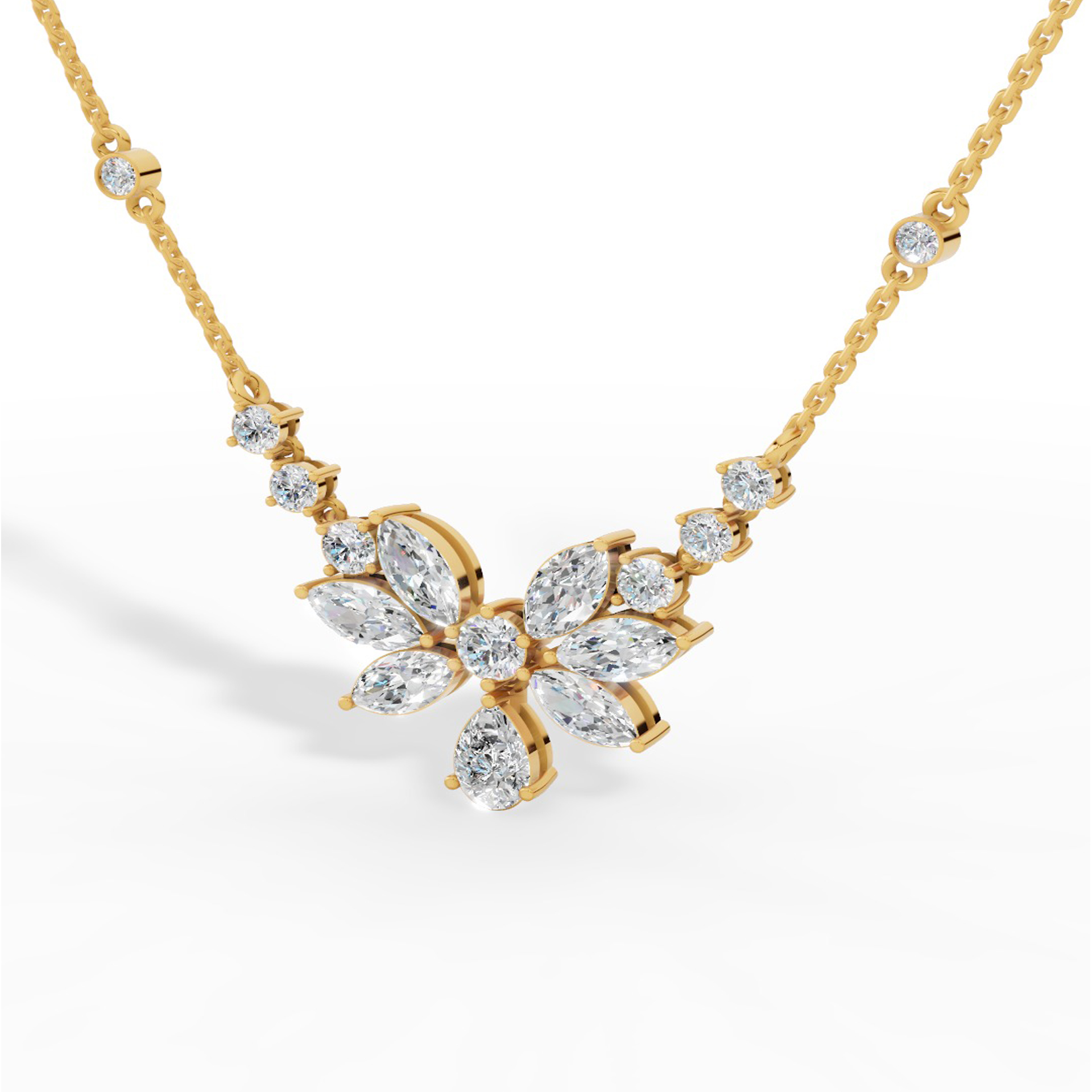 Fancy Shaped Pear And Marquise Cut Necklace With Chain Lab Grown Diamonds 14K Yellow Gold 2.6 CTW