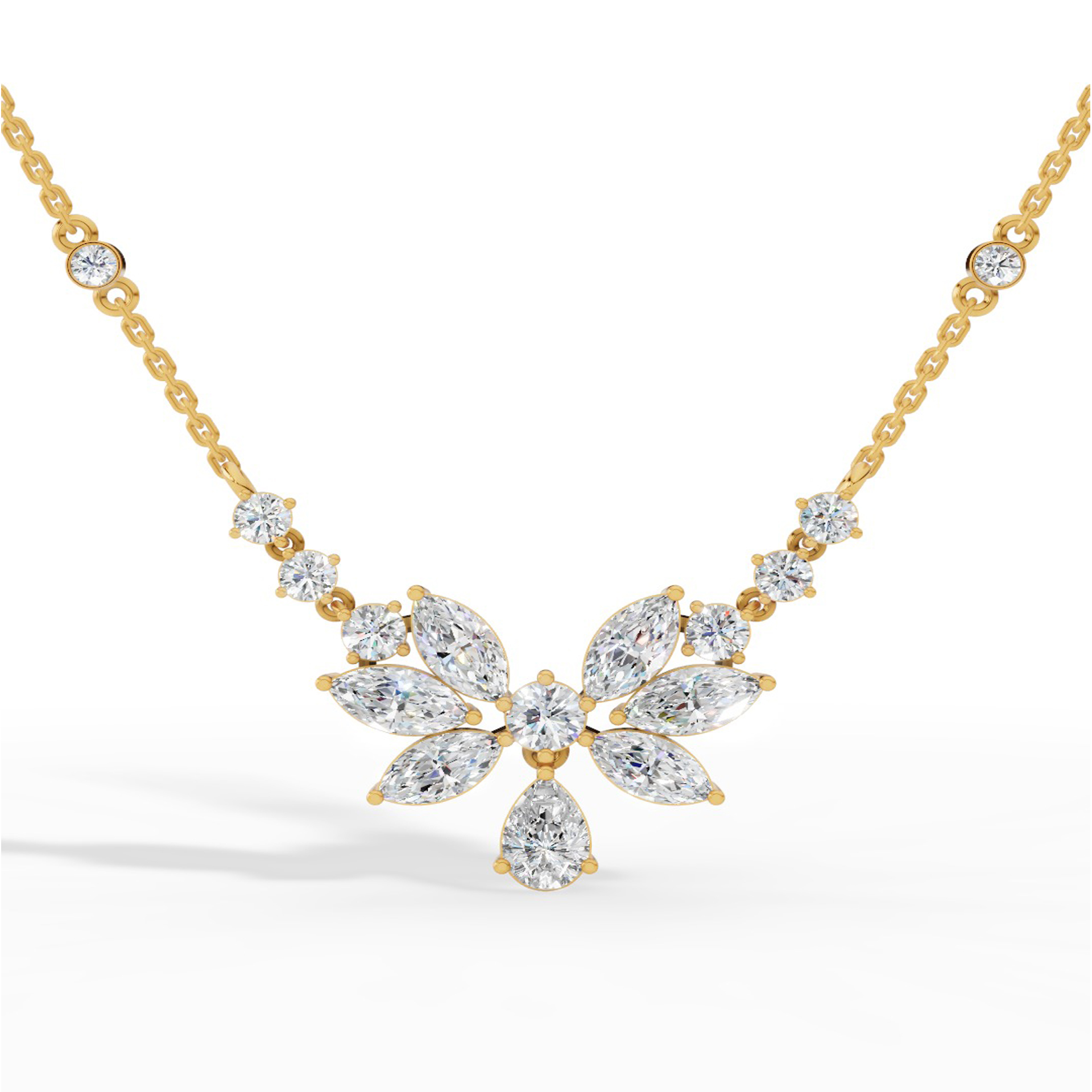Fancy Shaped Pear And Marquise Cut Necklace With Chain Lab Grown Diamonds 18K Yellow Gold 2.6 CTW