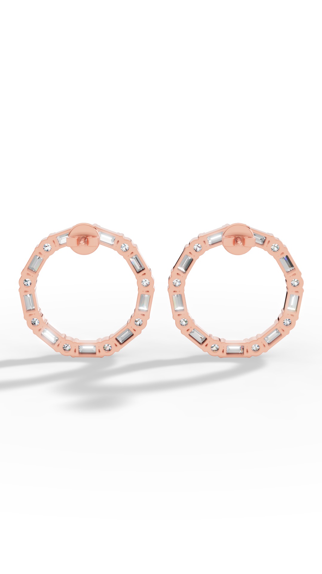 Hoop Earrings With Baguette & Round Cut Lab Grown Diamonds 14K Rose Gold 1.5 CTW