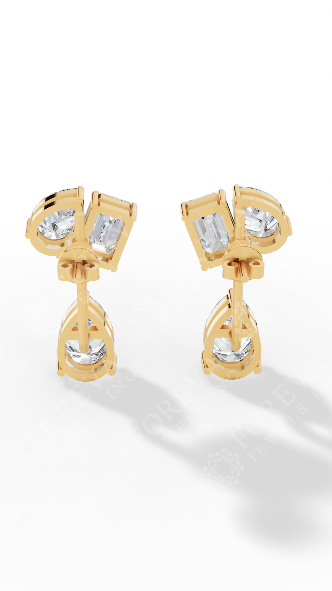 Multi Stone Cascade Duet Earrings With Emerald And Pear Cut Lab Grown Diamonds 18K Yellow Gold 5.4 CTW