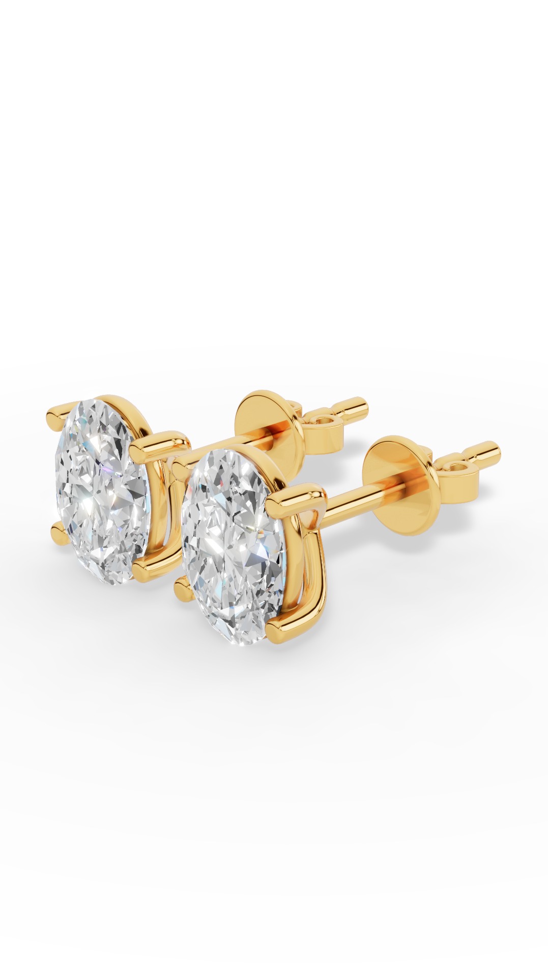 The oval cut four prong solitaire stud earrings showcase an elongated oval gemstone securely set in four prongs, offering classic brilliance with a sleek, elegant silhouette. The 10K yellow gold setting ensures lasting performance, its strong alloy protecting the design while maintaining recognizable golden warmth.