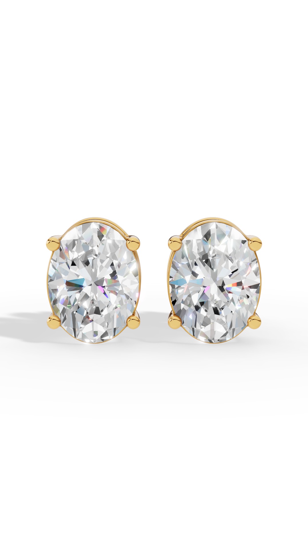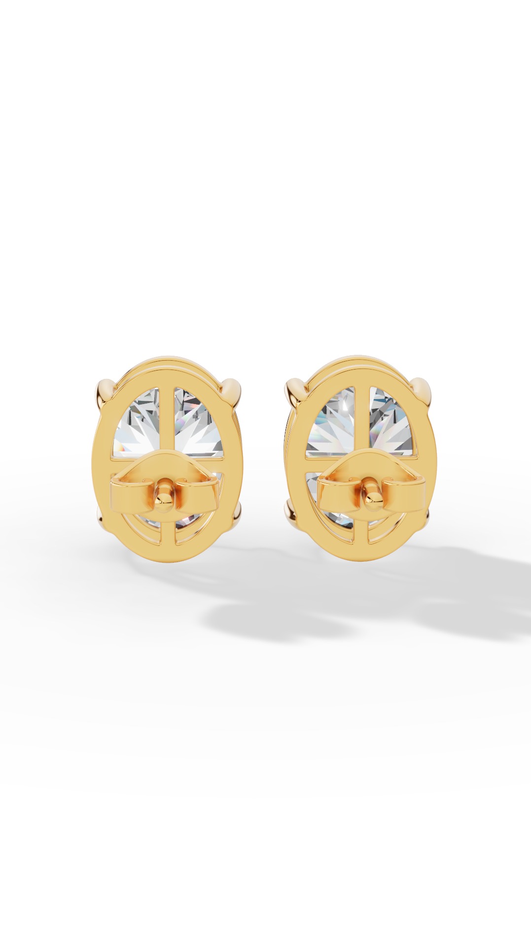 The oval cut solitaire stud earrings showcase elegant elongated with brilliant sparkle, securely set in a classic four-prong design, offering timeless sophistication and everyday elegance. 14K yellow gold brings classic appeal to this design, its balanced alloy ensuring both strength and recognizable golden beauty.