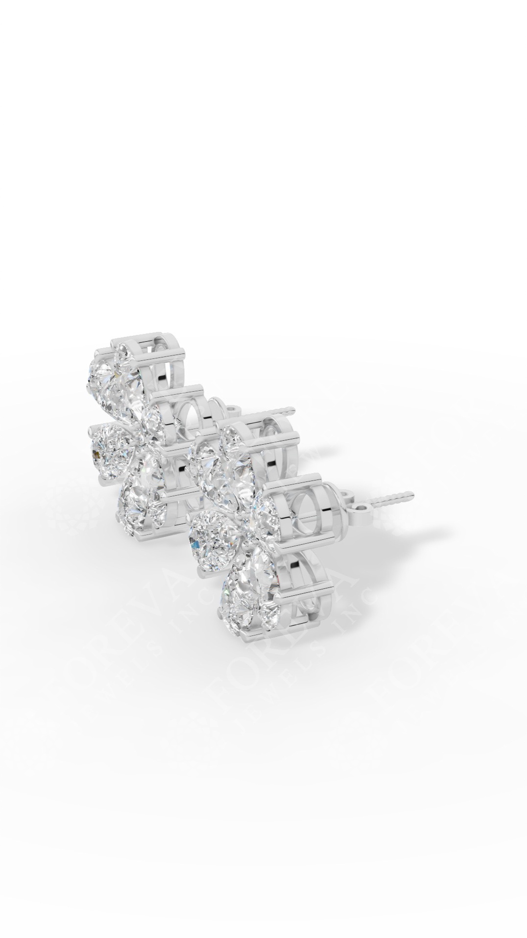 Pear Cut Floral Cluster Stud Earrings Lab Grown Diamonds 14K White Gold 4.3 CTW