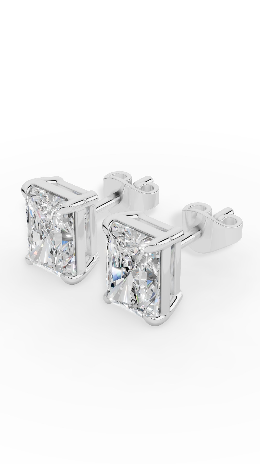 The radiant cut solitaire stud earrings feature a unique rectangular shape with brilliant sparkle from multiple facets, combining geometric elegance with intense brilliance for a modern, sophisticated look. The 10K white gold composition balances affordability with longevity, its sturdy alloy perfect for pieces worn constantly.