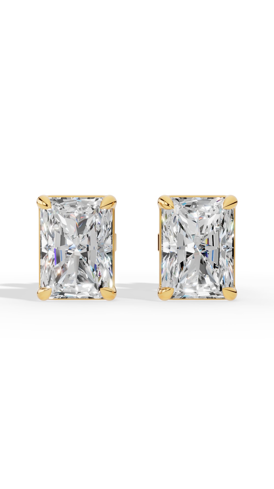 Radiant Cut Solitaire Stud Earrings Lab Grown Diamonds 18K Yellow Gold 2.0 CTW