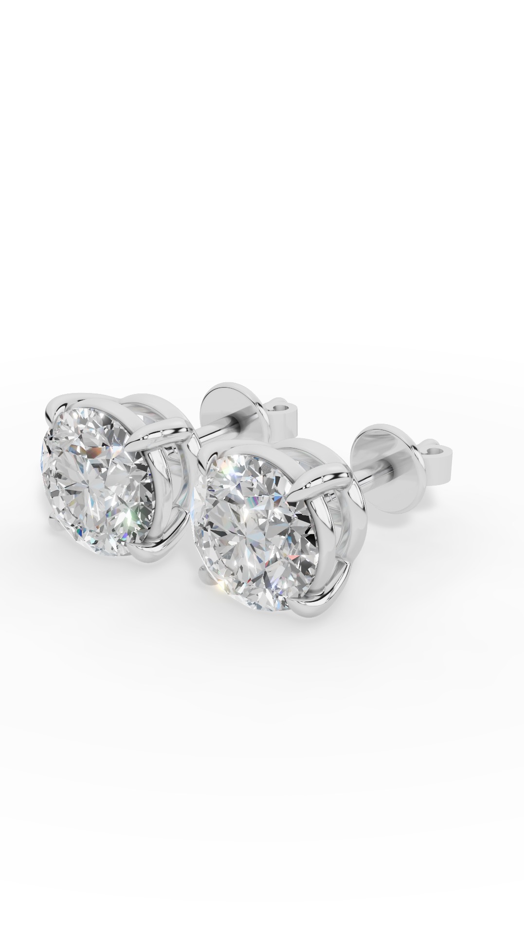 In 14K white gold, this piece balances purity with practicality. The round cut solitaire stud earrings showcase classic brilliance with a perfectly round stone, set in a secure prong setting for timeless elegance and versatile everyday wear.
