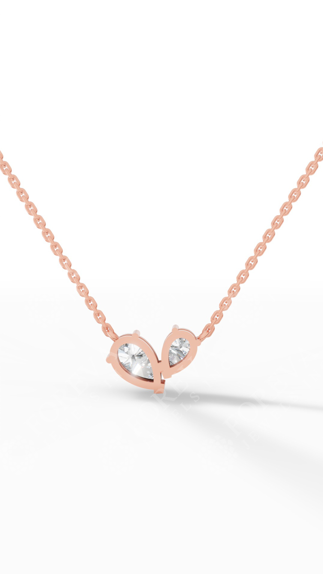 Crafted in 10K rose gold, this piece offers maximum durability without compromising its romantic character. Elegant two-stone necklace with a dazzling pear-cut stones, symbolizing unique connections and radiant love .