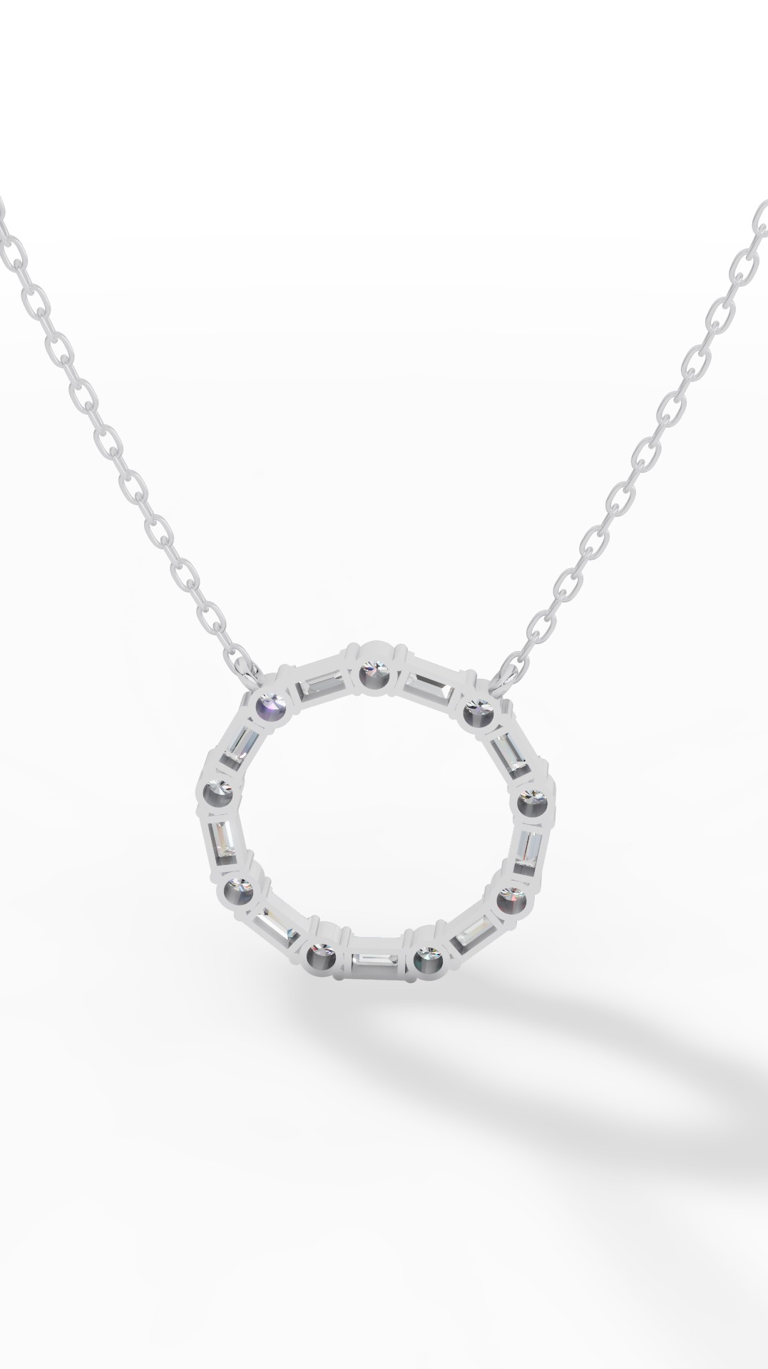 Unity Circle Necklace With Bagguete And Round Cut Lab Grown Diamonds 10K White Gold 1.2 CTW