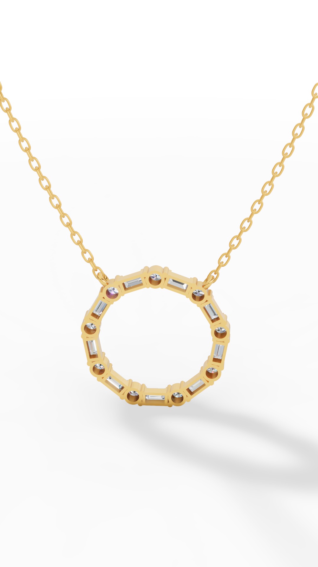 Unity Circle Necklace With Bagguete And Round Cut Lab Grown Diamonds 18K Yellow Gold 1.2 CTW